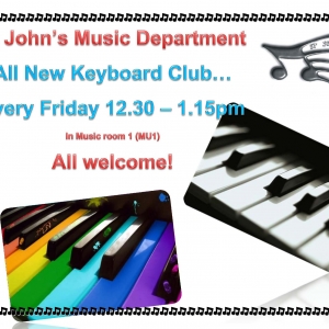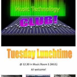 Keyboard clubThis club is open to any students who have an interest in learning how to play the keyboard. You will learn how to read music, play melodies, create chords and add a backing track! Whether you are a complete beginner or just want to develop your skills more…..why not come along and give it a go? It’s great fun! Talk to the Music Department for more details! Music Technology ClubDo you want to learn about recording and editing….? Ever wanted to record your own music….? Create your own drum patterns? Or use the recording studio?? If the answer is yes…..why not come along to the all-new Music Technology Club?This club is open to students who have an interest in learning about all aspects of recording music, including how a recording studio works,how to operate music software and how to edit and manipulate sounds. Why not come along and have a go? It’s great fun! Talk to the Music Department for more details!